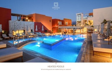Główna część hotelu Sunshine Village została zbudowana w autentycznym stylu kreteńskim. W głównej części znajduje się recepcja oraz pokoje dla gości. To właśnie tutaj znajdują się lokale gastronomiczne, baseny, obiekty sportowe i rozrywkowe, a także w pełni wyposażone centrum SPA.