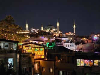 Siedząc na tarasie z filiżanką tureckiej herbaty, można podziwiać widoki na Sultanahmet i Morze Marmurowe.