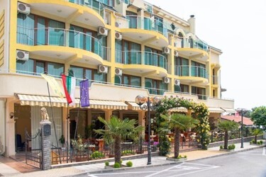 Perla Plaza Hotel - All Inclusive — это отель, расположенный в городе Приморско. К услугам гостей сезонный открытый бассейн, сад, терраса и ресторан. Вариант размещения располагается в 300 м и 600 м соответственно от Северного пляжа Приморско и Пляжа Приморско. Среди удобств есть бар и принадлежности для барбекю. Гости могут обратиться к сотрудникам круглосуточной стойки регистрации, воспользоваться трансфером от/до аэропорта или доставкой еды и напитков, а также подключиться к бесплатному Wi-Fi.