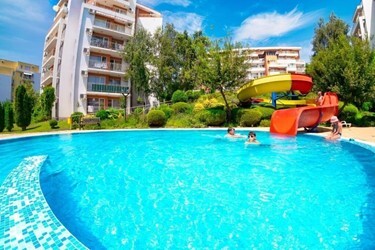 Crown Fort Club розташований за 200 метрів від пляжу, між курортами Святий Влас і Єленіте. Оточений лісом комплекс пропонує виняткове поєднання морського і чистого гірського повітря, а також чудові види з апартаментів на море і гори. На території комплексу є 2 ресторани, 10 басейнів, один з яких зі штучними хвилями, 5 дитячих басейнів з водними атракціонами, 6 дитячих ігрових майданчиків. Гості можуть скористатися перукарнею, послугами манікюру та педикюру. Зона відпочинку з сауною та фітнес-центром доступні за додаткову плату. До послуг гостей тенісний корт, міні-гольф і поле для міні-футболу.